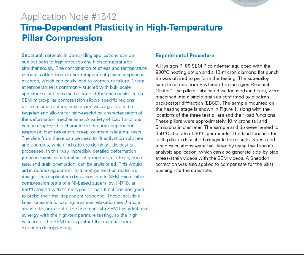 In conjunction with Bruker Nano Inc. I provided edits on “Time-Dependent Plasticity in High-Temperature Pillar Compression” Application note.